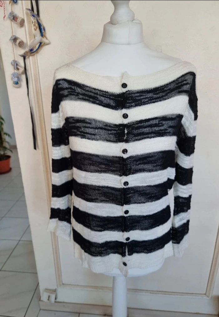 🌸💜😊😊Merci de me contacter avant tout achat car je suis souvent en déplacement afin d'être sur que je puisse envoyer le colis dans les temps. MERCI😊😊💜🌸 Chemise/ gilet rayé noir et blanc.