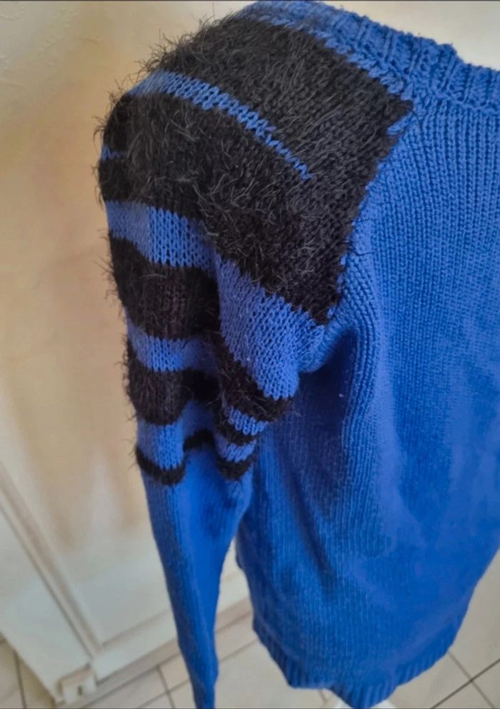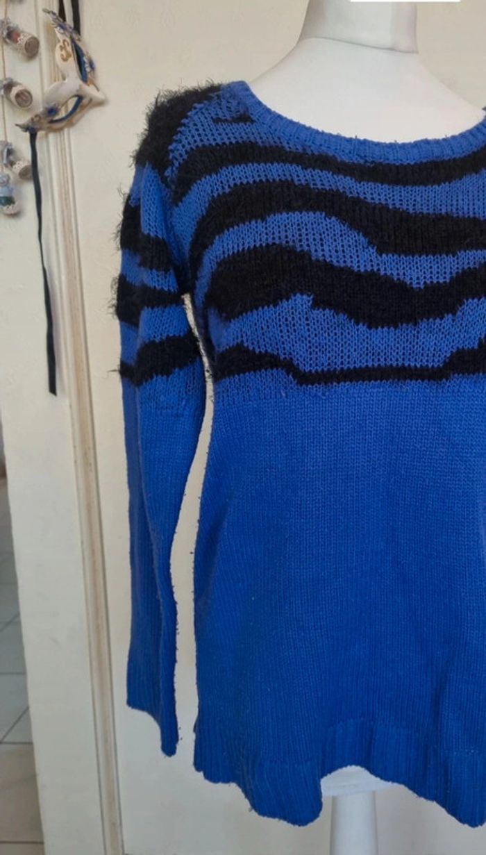 🌸💜😊😊Merci de me contacter avant tout achat car je suis souvent en déplacement afin d'être sur que je puisse envoyer le colis dans les temps. MERCI😊😊💜🌸 Pull bleu et noir style zèbre Mim