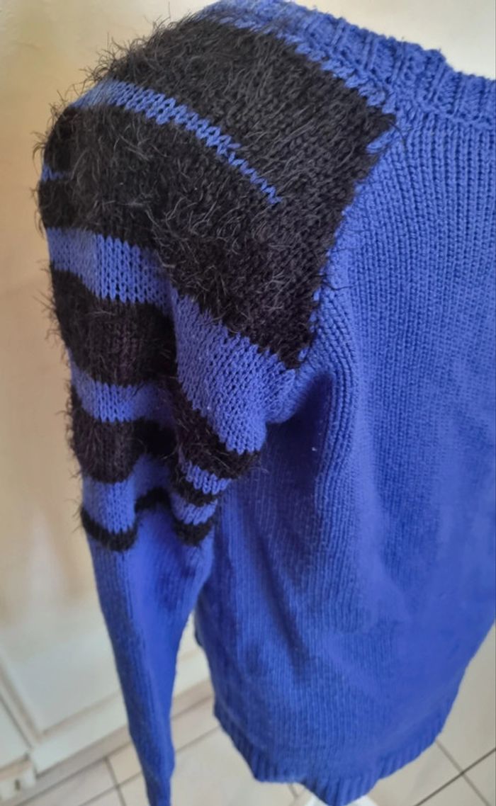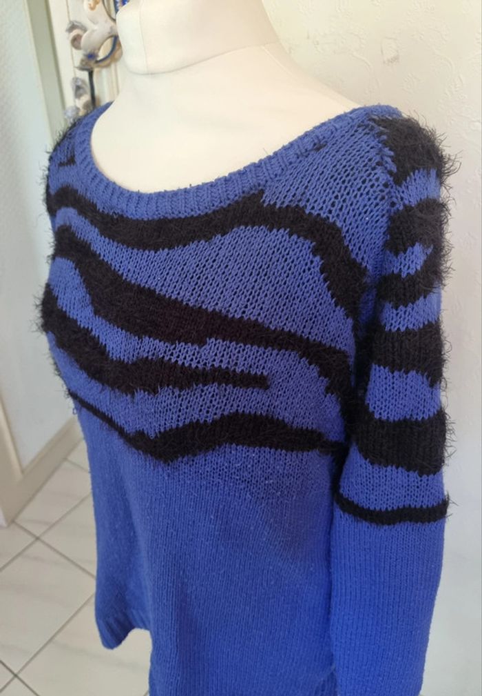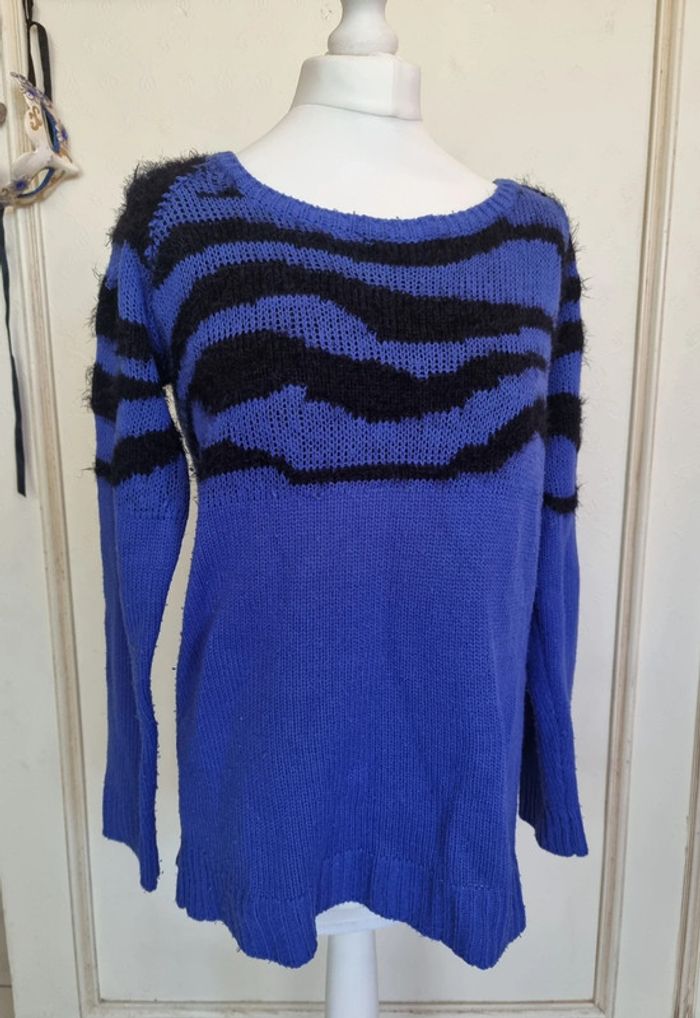 🌸💜😊😊Merci de me contacter avant tout achat car je suis souvent en déplacement afin d'être sur que je puisse envoyer le colis dans les temps. MERCI😊😊💜🌸 Pull bleu et noir style zèbre punk Mim taille 40