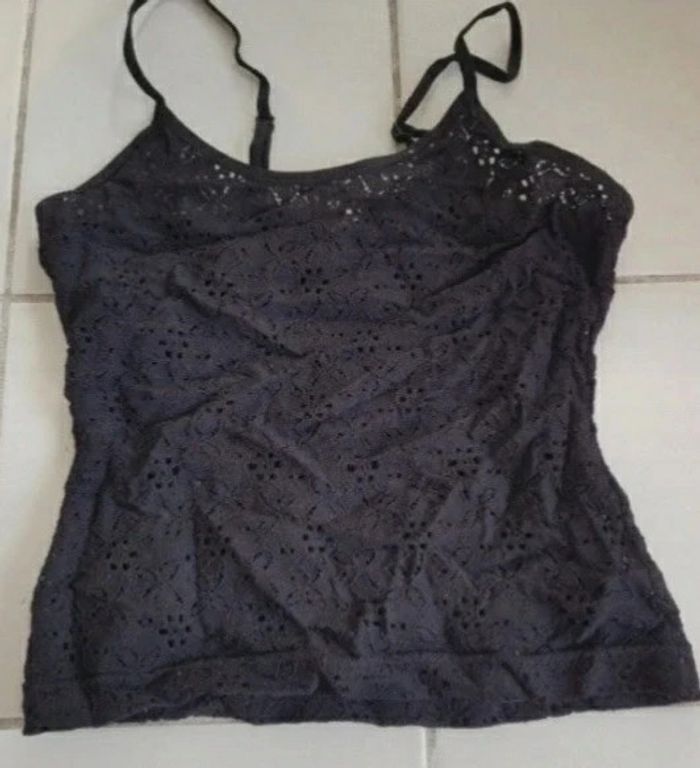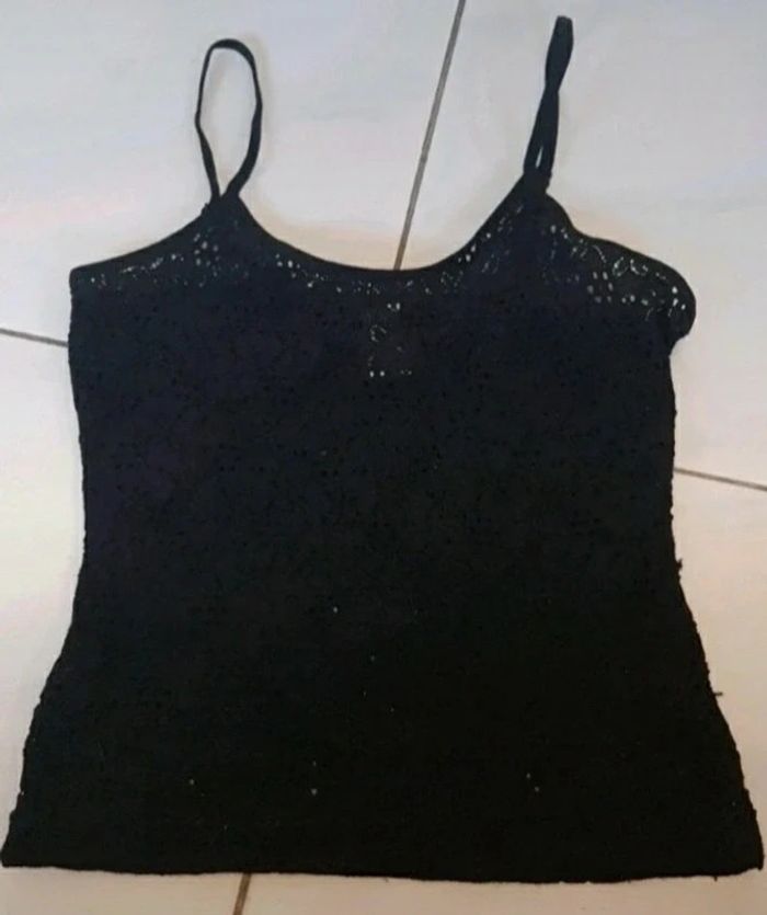 🌸💜😊😊Merci de me contacter avant tout achat car je suis souvent en déplacement afin d'être sur que je puisse envoyer le colis dans les temps. MERCI😊😊💜🌸 Mini debardeur noir et moulant. Lorsqu'il est porté la dentelle se voit très bien. Couleur noir.