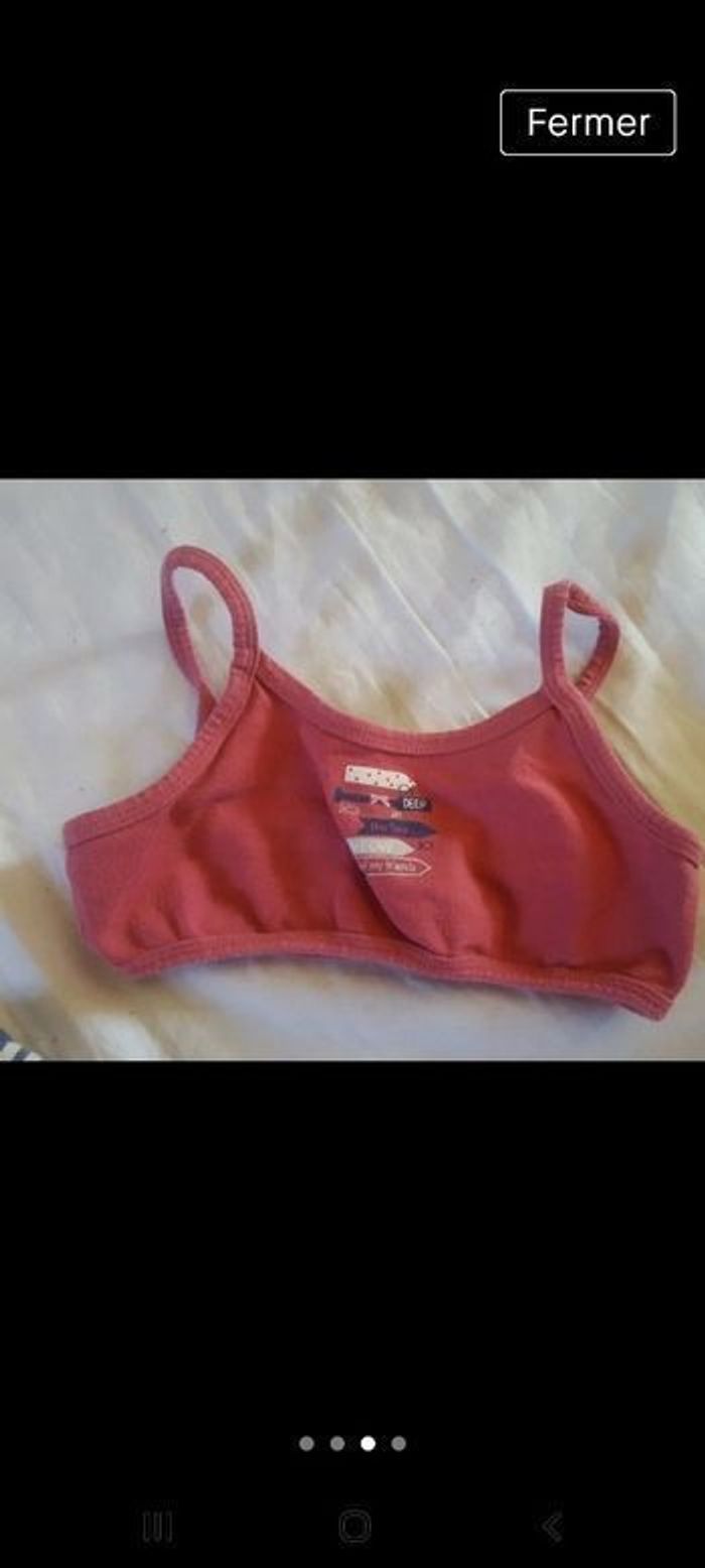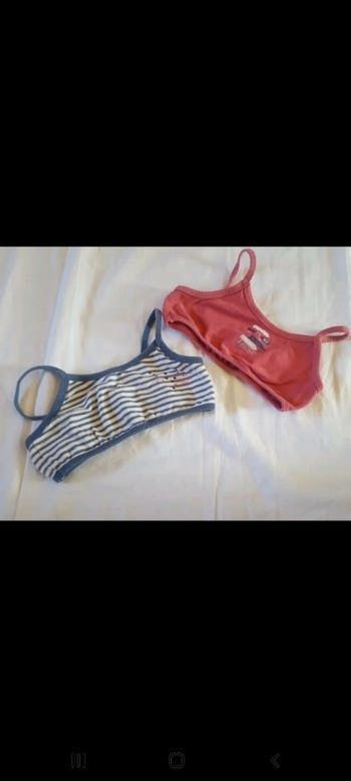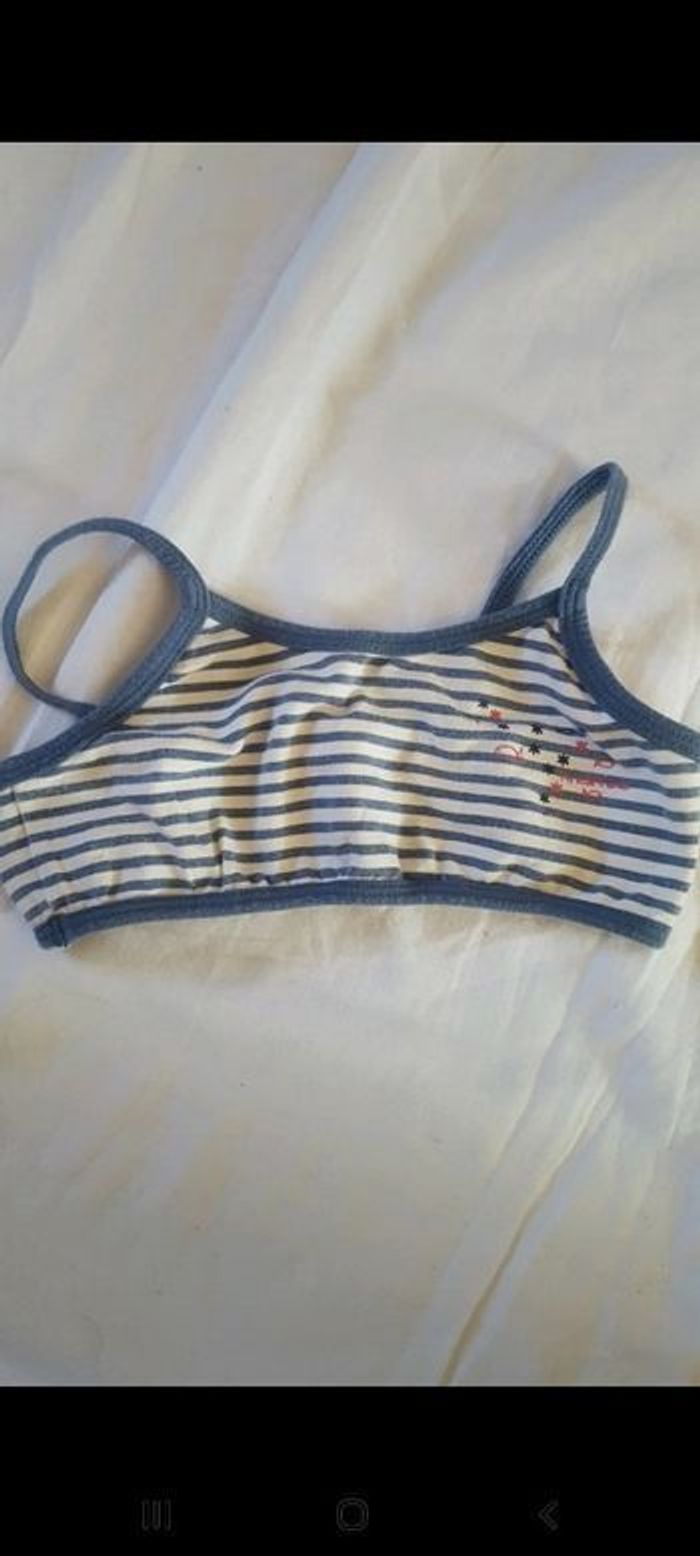 Lot de 2 brassières dont une rose et l'autre rayé bleu et blanche en 4/5 ans étéfille4ans brassière4/5ans
