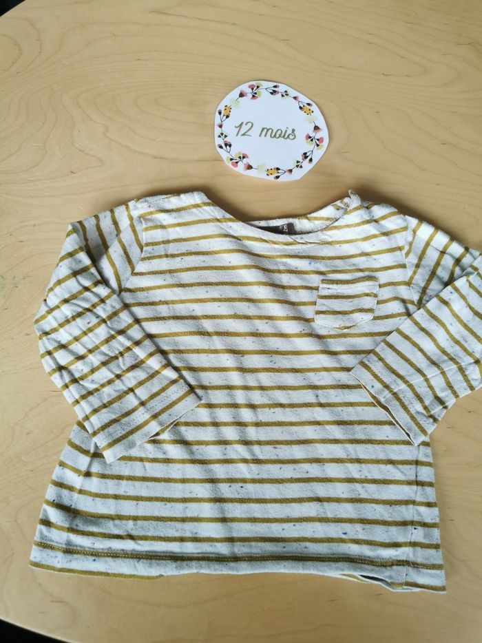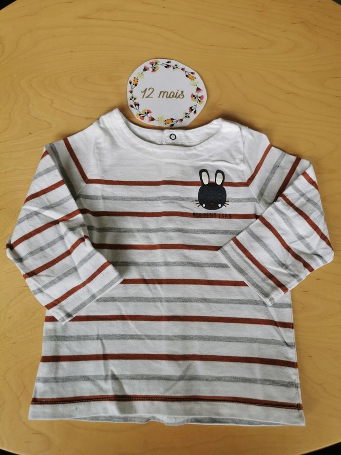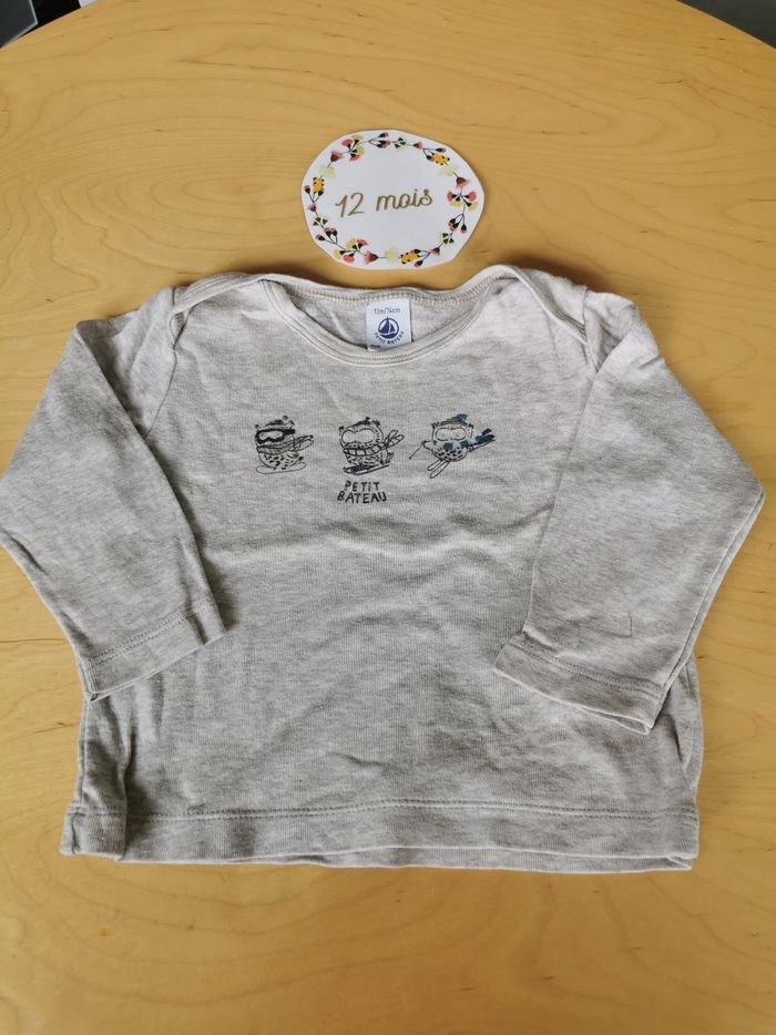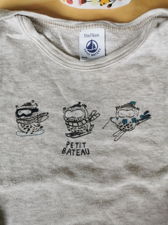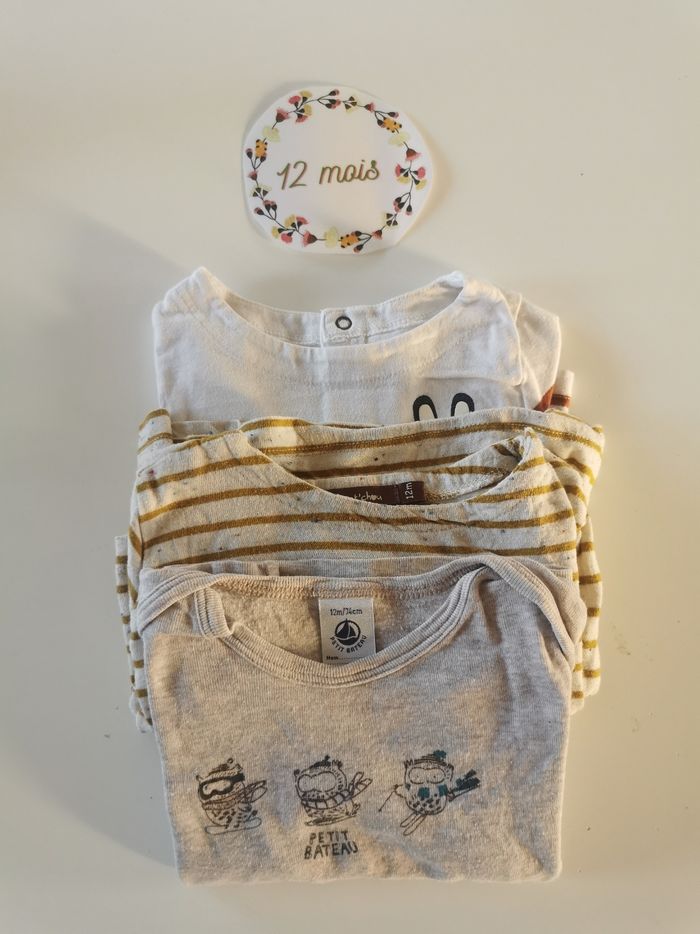 Lot de 3 t-shirts manches longues bébé garçon 12mois petit bateau, boutchou et orchestra