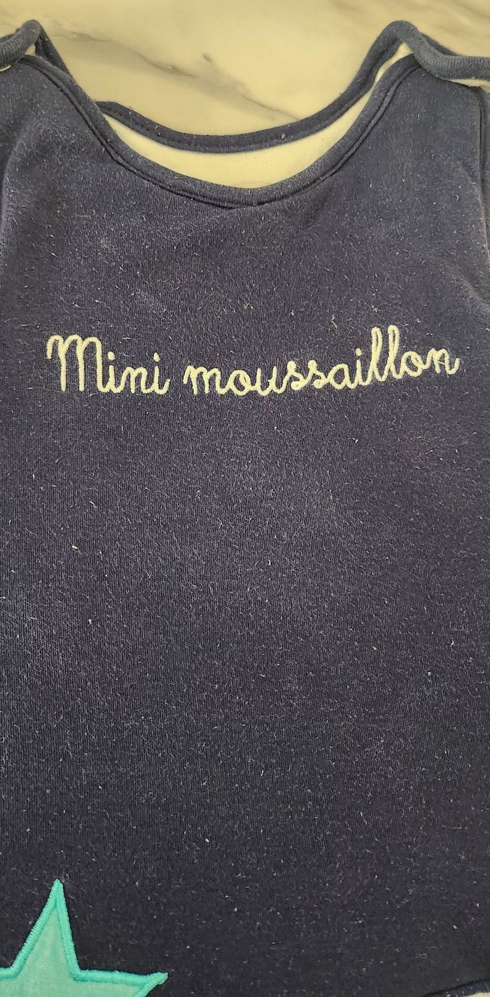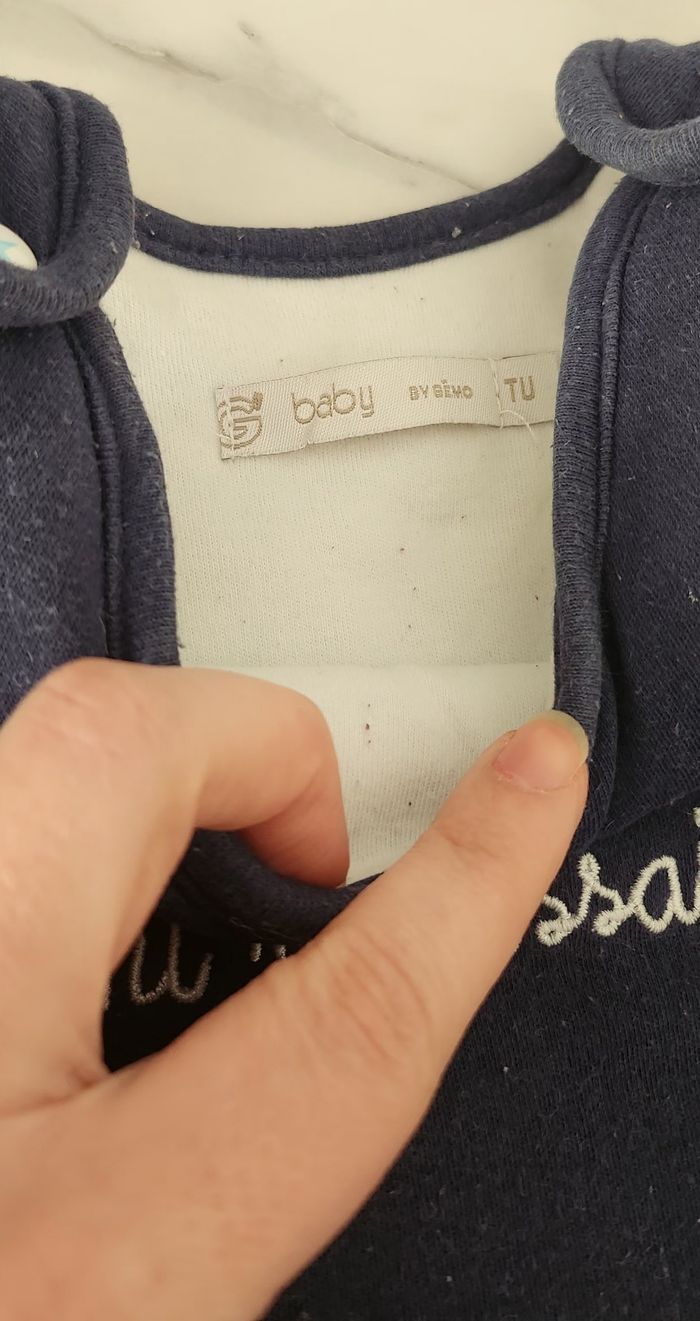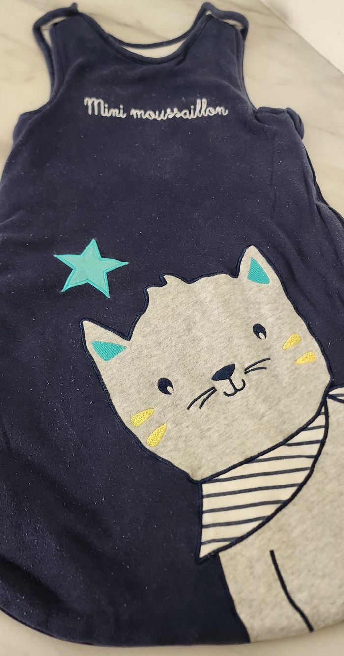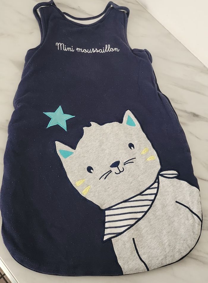 Gigoteuse, Taille Unique, mais correspond pour un 0-6mois, légère petite tâche en dessous de l'encolure, petites bouloches sur le devant et l'intérieur de la gigoteuse. Elle reste en très bon état,la fermeture éclair fonctionne 👌