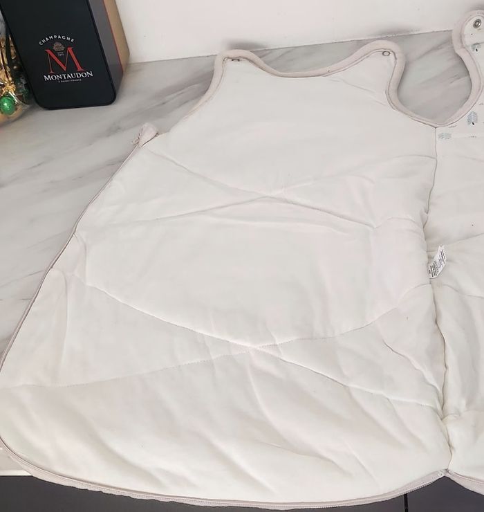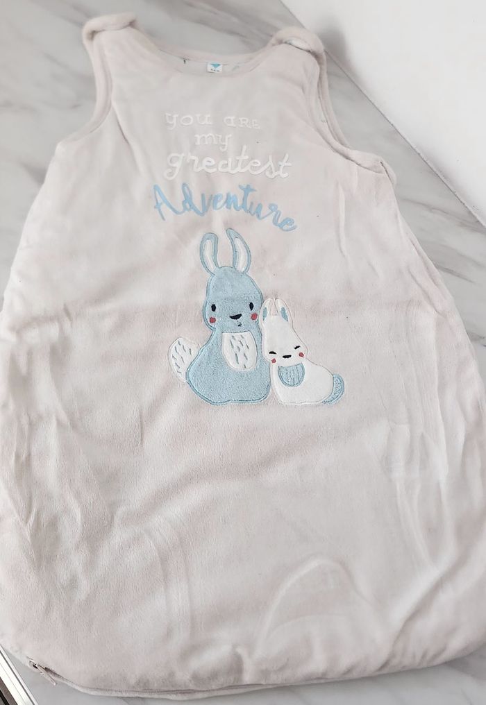 Gigoteuse épaisse, Tex, 0-6mois, petite tâche en dessous de la présence en haut de la gigoteuse, elle reste en très bon état, la fermeture fonctionne 👌
