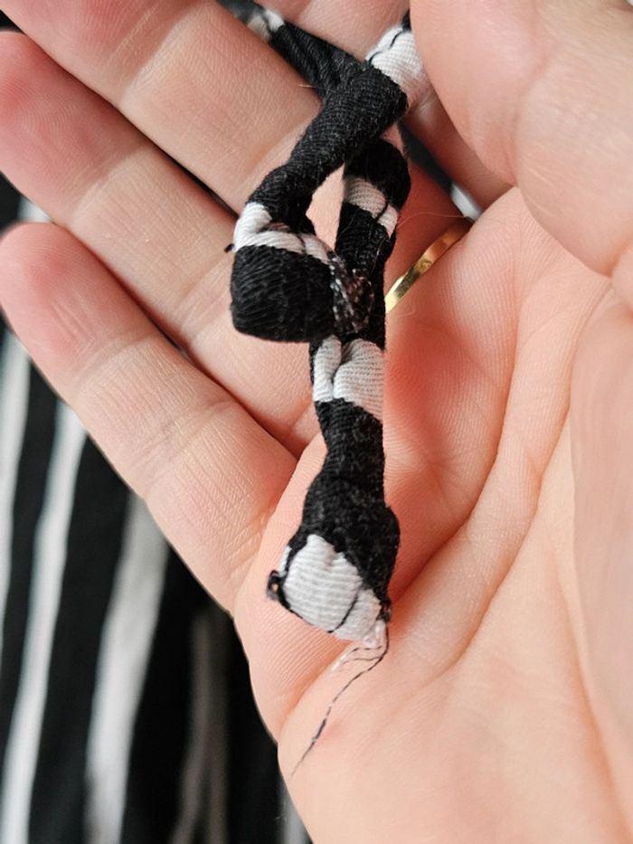 En très bon état 100% viscose Longeur totale 95cm Entrejambe 72cm Largeur 34cm extensible Muni de poches (non trouées)