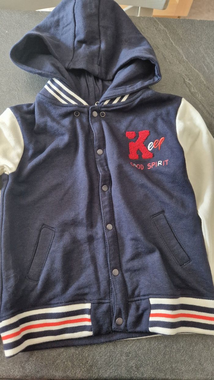 Gilet 5 ans neuf sans étiquette Capuche amovible grâce aux pressions tissa