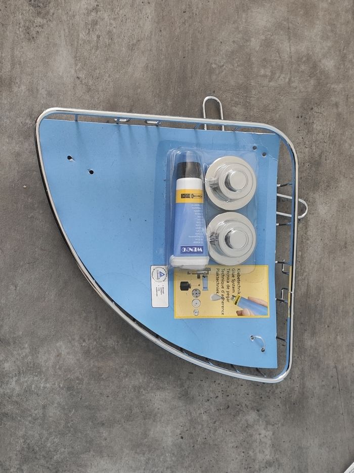 Étagère de douche d'angle, pour y poser ses shampooing et gel douche. Neuf avec accessoires