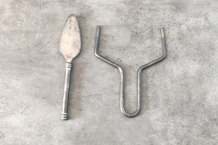 Petit ensemble en métal argenté : -petite pelle à tarte ou autre -tranche fromage 12€ le lot