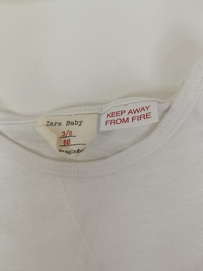 Tee shirt blanc Motif sur les poches Petite trace sur le bras Zara taille 3-6 mois