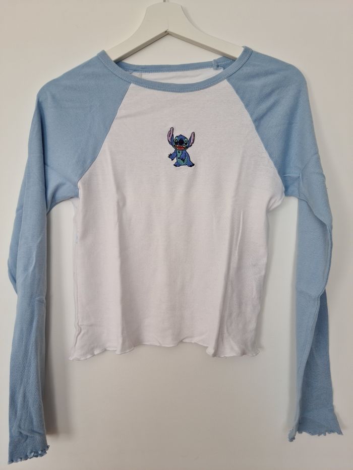 T-shirt fille de marque Stitch Disney Jennyfer ; Ton blanc et bleu ; Taille L ; En très bon état