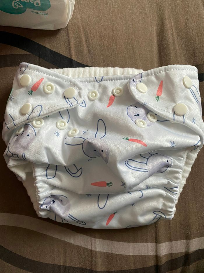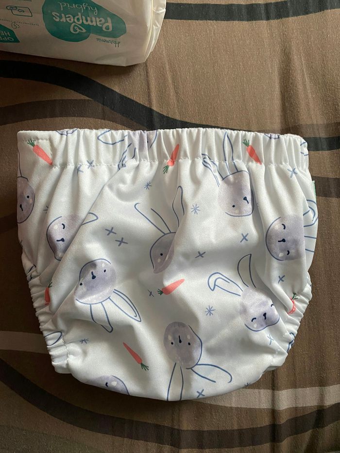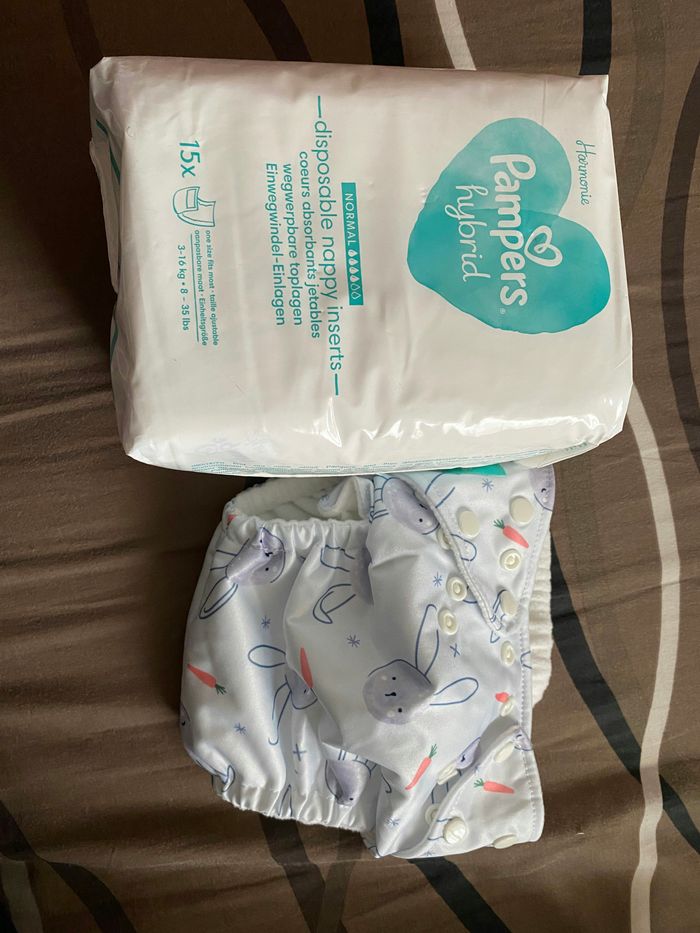 Couche lavable Pampers + 1 paquet de 15 Pampers hybrid coeurs absorbants jetables Taille ajustable avec les pressions et ajustable à l’intérieur de la couche pour les jambes avec l’élastique Taille ajustable 3-16kg Neuf jamais utilisé