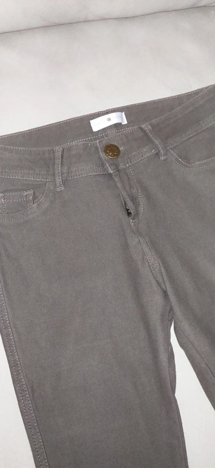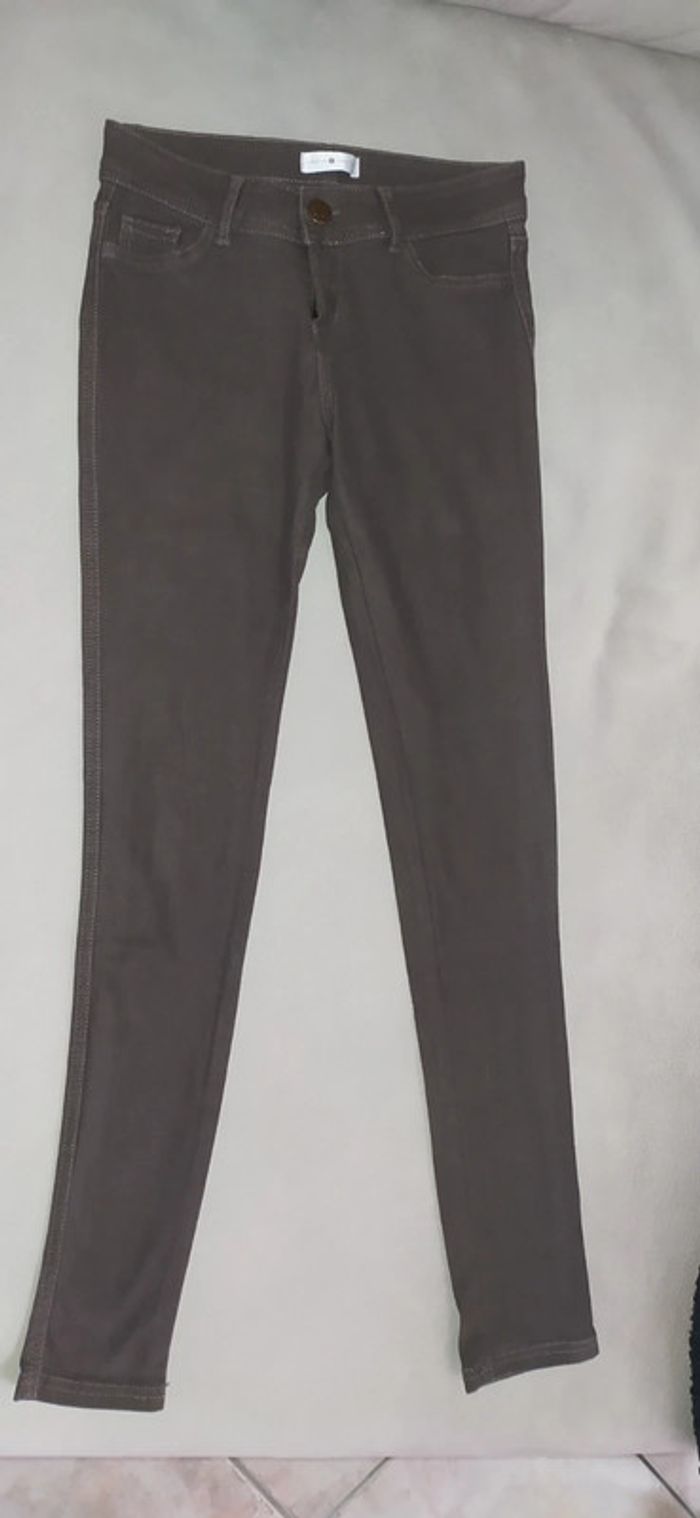 Jeans kaki souple, coupe skinny Très bon état Étiquette notée 38 mais correspond à un 36 Mon dressing est rangé par taille. Pour voir tous mes vêtements en taille 36 cliquez sur le lien #celine_yiyi_36 ATTENTION pour que les liens fonctionnent, pensez à supprimer vos filtres et recherches 😊