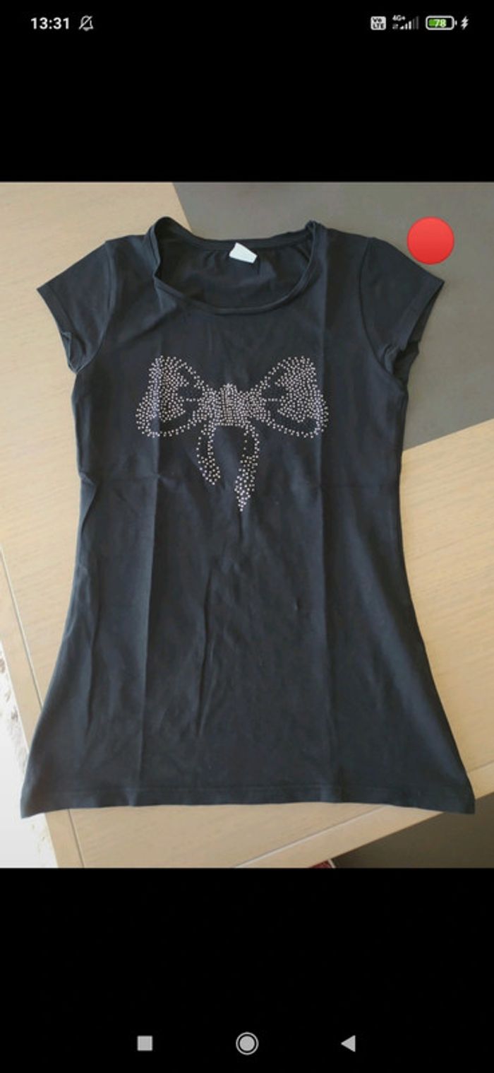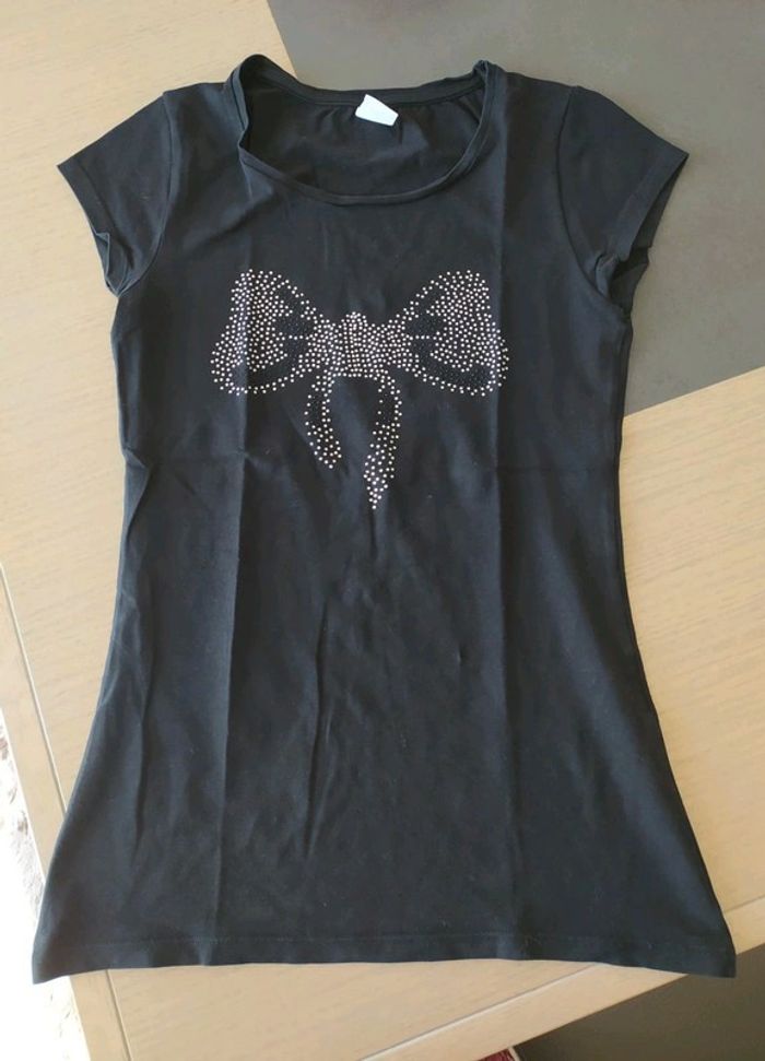 Joli T Shirt noir avec noeud en strass Remises sur lots activées🎁 #celine_yiyi_hauts
