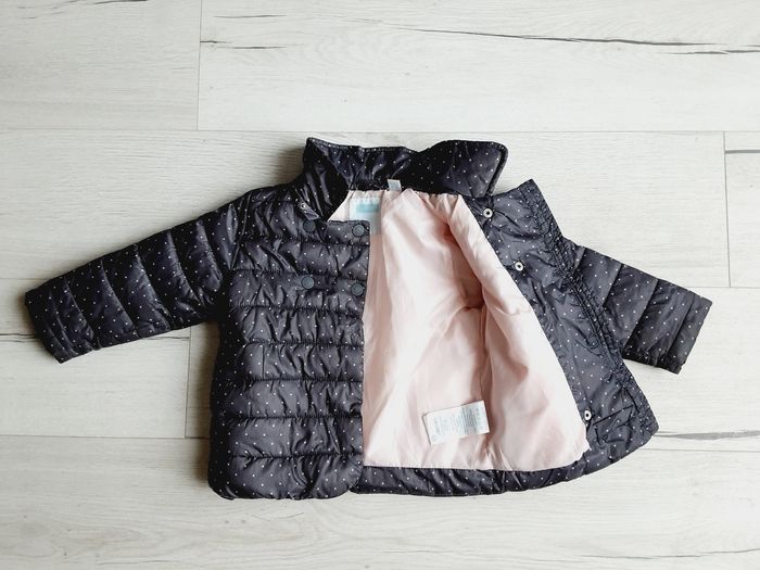 Vêtement fille veste blouson manteau doudoune grise à pois roses Obaïbi 18 mois - photo numéro 1