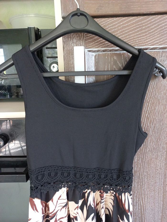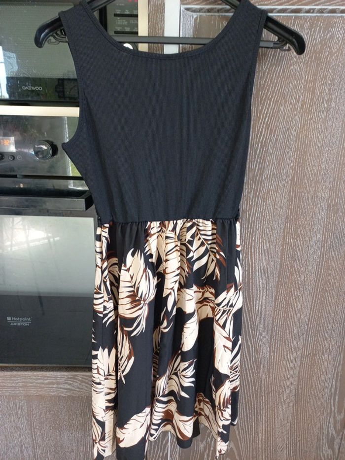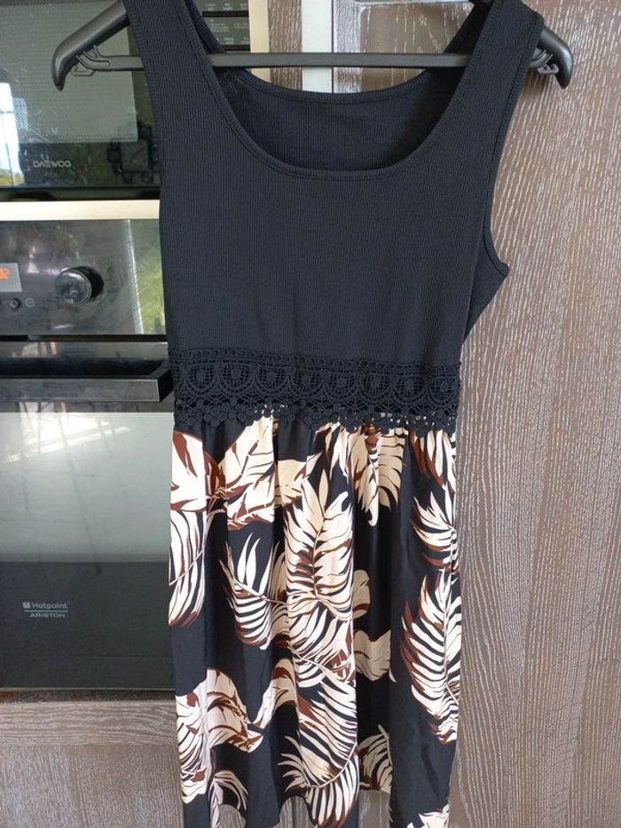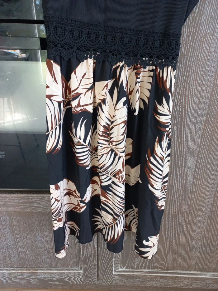 Robe neuve noire à feuilles beige marron S - photo numéro 1