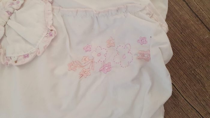 Robe forme boule, blanche avec motif fleurs roses, marque kimbaloo, taille 6 mois