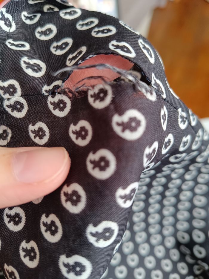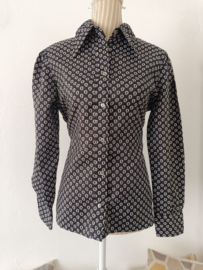 Chemise indiqué taille 44 mais correspond taille 40. Épaules 40 cm Longueur 60 cm Un petit point de couture à refaire sur le côté de la chemise