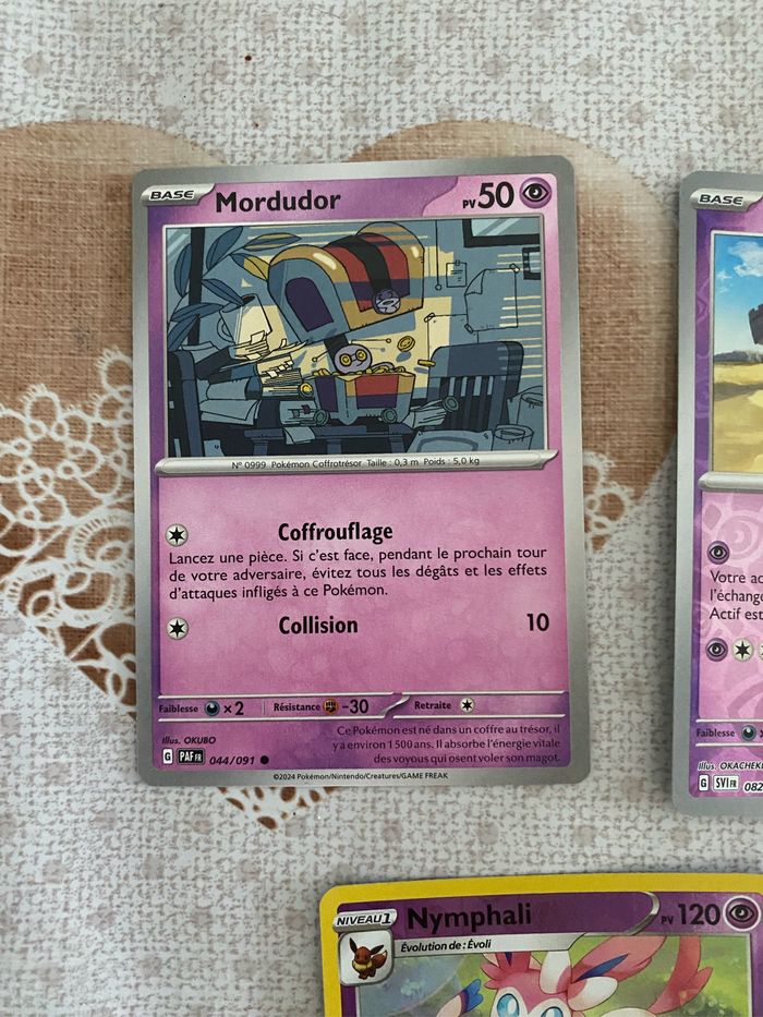 En parfait état Nymphali holographique -> 0.25 Mordudor -> 0.02 Soporifik holographique -> 0.10