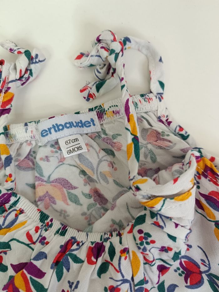Robe a bretelles Blanc motif fleuri Verbaudet 6 mois