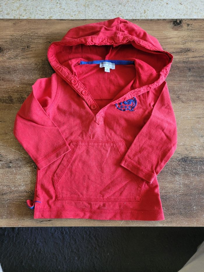 Petit polo Capuche Couleur rouge Dessin bleu Taille 18 mois Mi saison Matière 100% coton