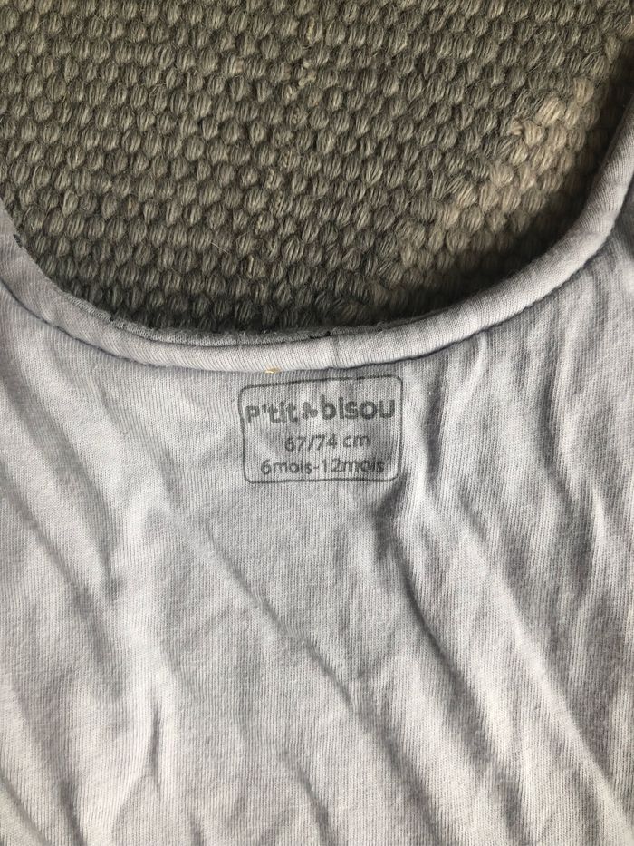 Je vends cette gigoteuse marque p’tit bisou taille 6/12 mois TOG 3,6 fermeture éclair en très bon état et 100% coton