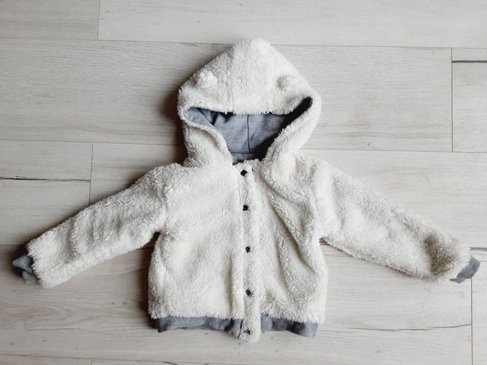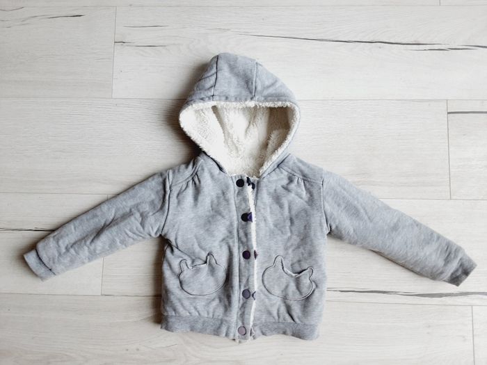 Vêtement fille gilet à capuche gris réversible moumoute blanc Vert Baudet 3 ans - photo numéro 1