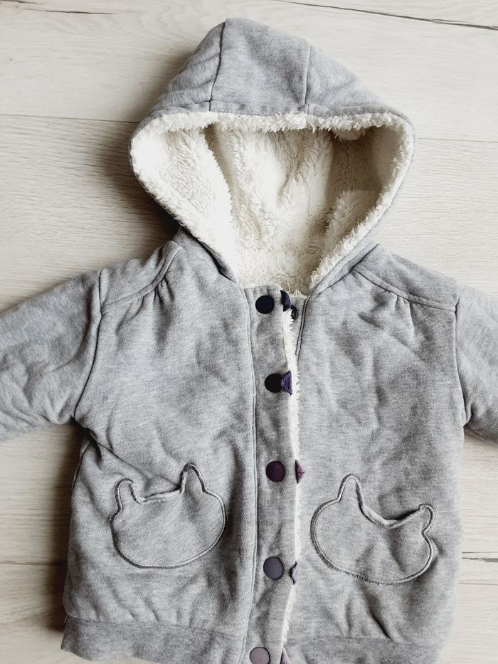 Vêtement fille gilet à capuche gris réversible moumoute blanc Vert Baudet 3 ans - photo numéro 3