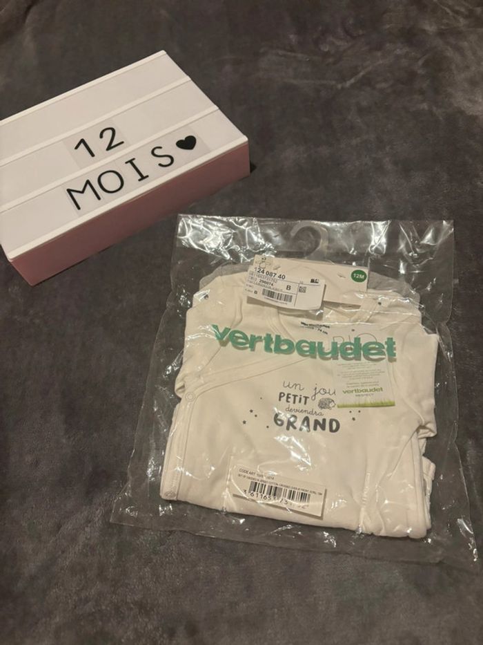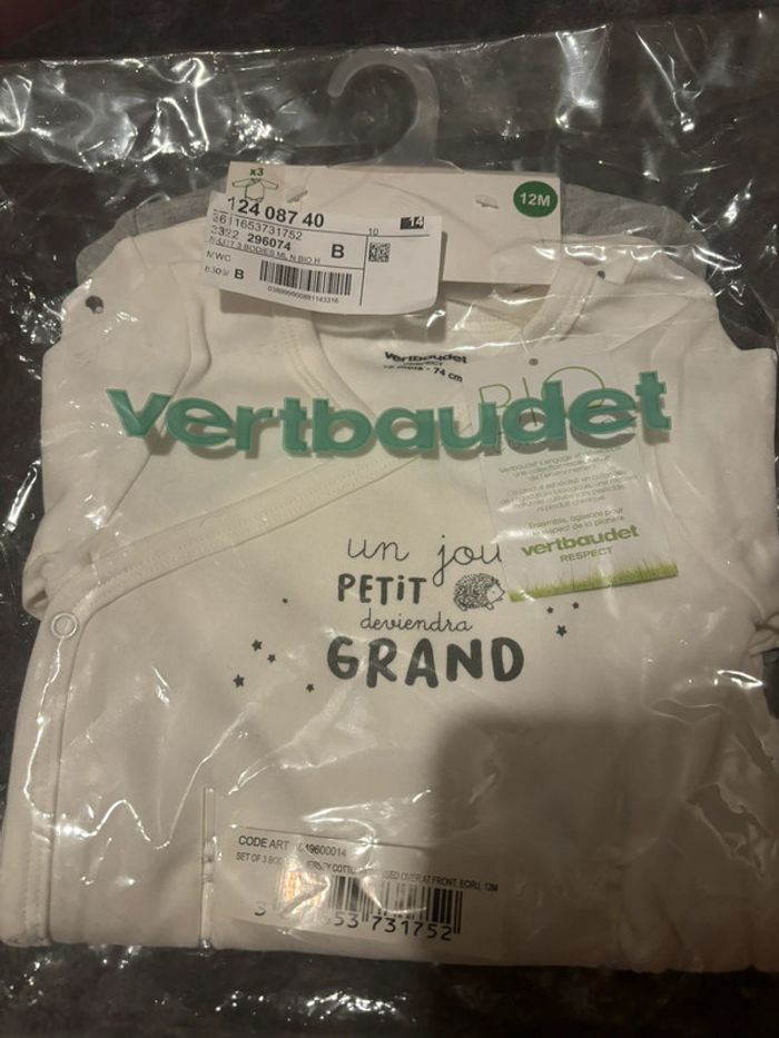Lot de 3 bodies neufs manches longues, VertBaudet, 12 mois - photo numéro 1