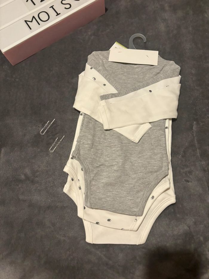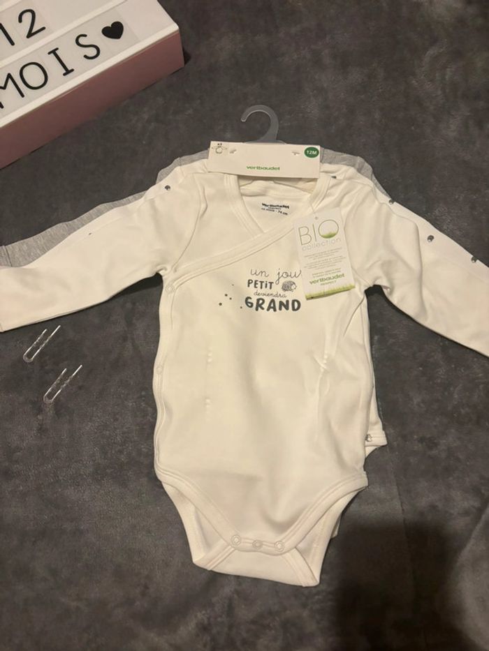 Lot de 3 bodies neufs manches longues, VertBaudet, 12 mois - photo numéro 5