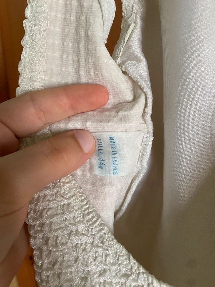 En très bon état Jamais porté A été lavé mais une petite tache ne part pas sur le devant (voir photo) Taille 44