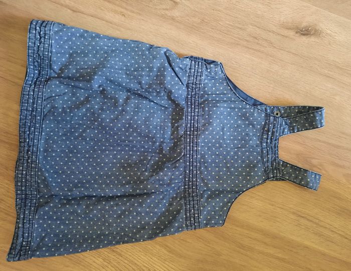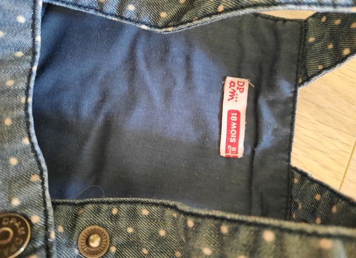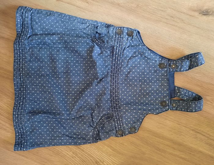 Robe-salopette courte en jean bleue à pois DPAM 18 mois - photo numéro 2