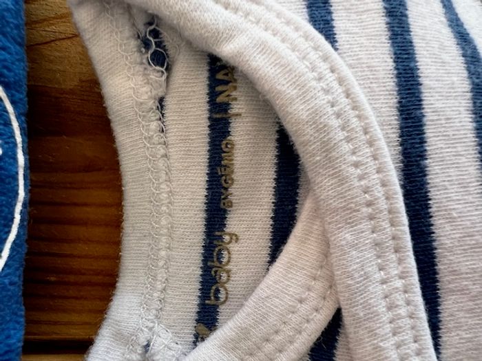 Bonjour Je vends cet ensemble pyjama et bodies pyjama 1 mois kiabi Bodies 0 mois gemo Coloris blanc/bleu Taille 0/1 mois