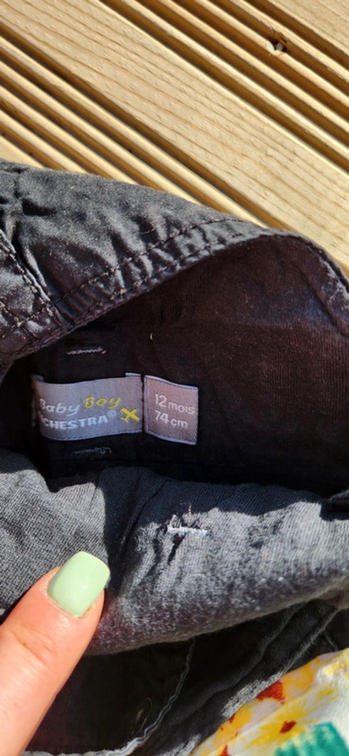 Bonjour, Je vends une salopette noire. En très bon état Marque Orchestra Taille 12 mois 74 cm 2 euros Merci