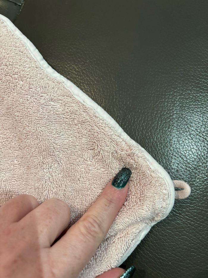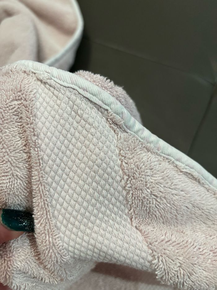 En bon état ( serviette en très bon état mais le biais a perdu des dessins par endroits et petits défaut de couture lors de la pose du biais sans conséquences sur la solidité )
