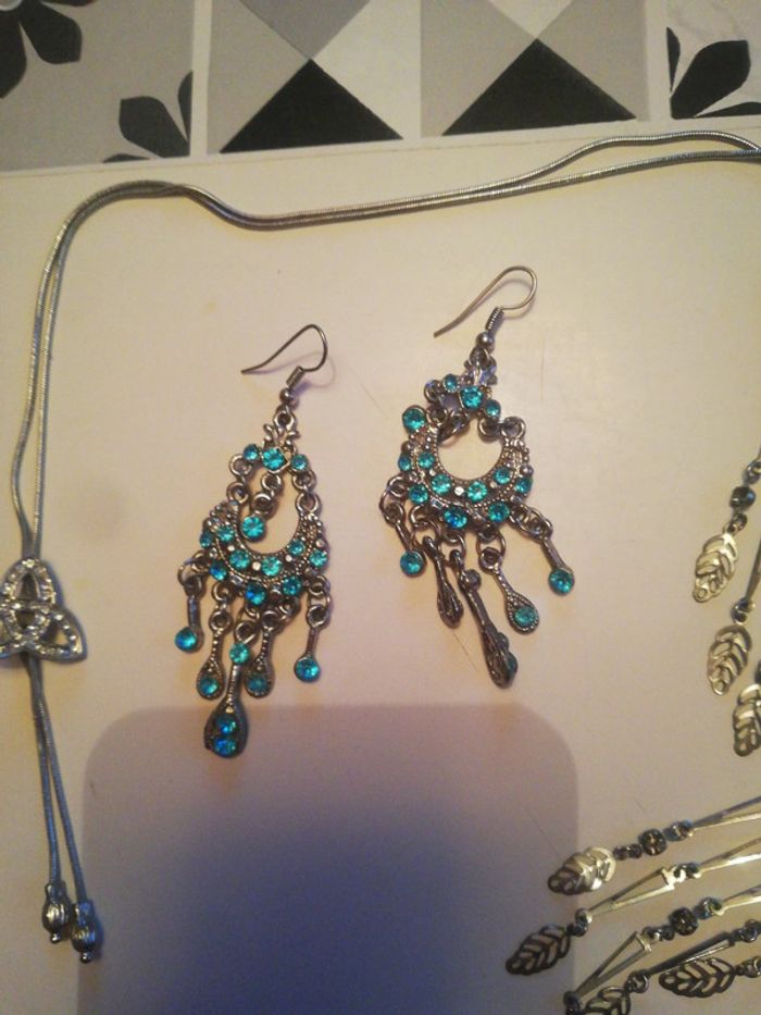 Lot de bijoux fantaisie 2 paire boucles d'oreilles et un collier ni or ni argent #cinderella53170_bijoux