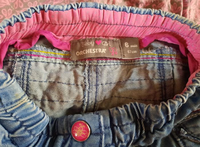Ensemble veste en jean+ pantalon en jean + blouse assortie motifs rose/gris Orchestra 6 mois - photo numéro 7