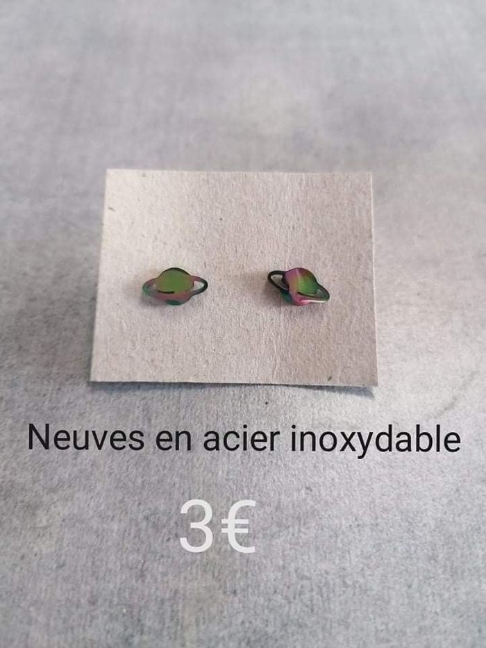 Boucles d'oreilles neuves en acier inoxydable multicolore en forme de planète.