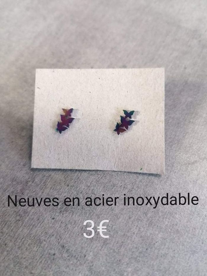 Boucles d'oreilles en acier inoxydable multicolore en forme des 3 papillons Les tons peuvent changer un peu par rapport à la photo