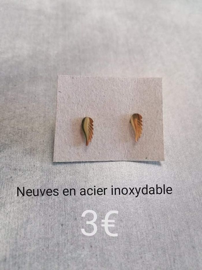 Boucles d'oreilles neuves en acier inoxydable doré en forme d'aile