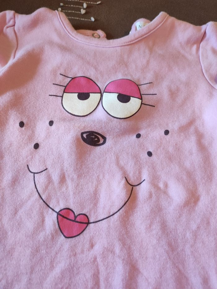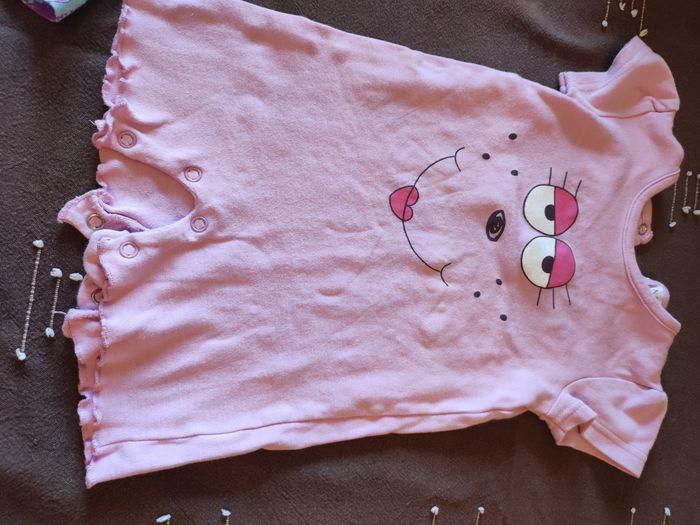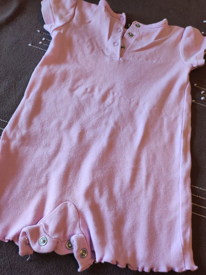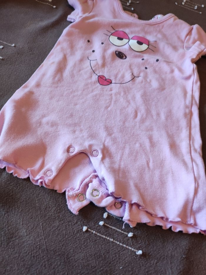 Combi short couleur lilas Avec stickers visage En coton ,taille 12 mois