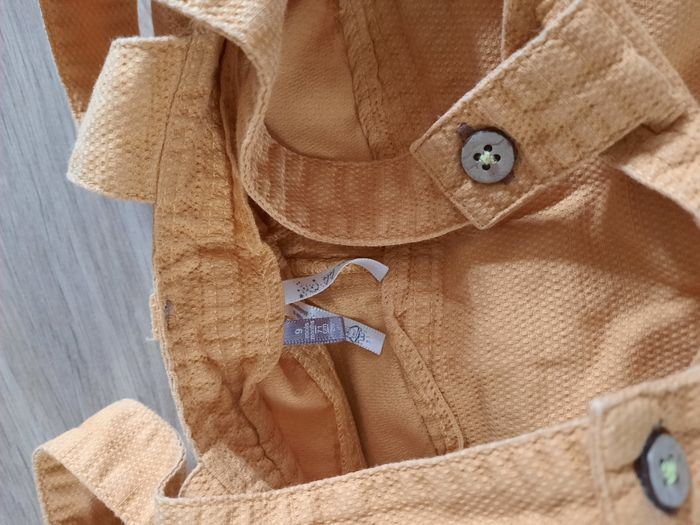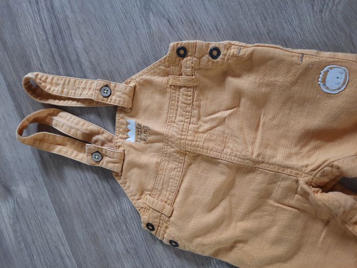 Ensemble été salopette/short jaune moutarde et T-shirt blanc à rayures Orchestra 9 mois - photo numéro 7