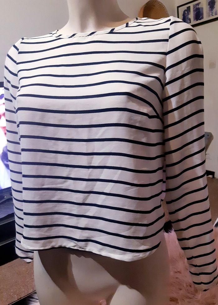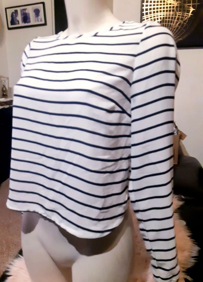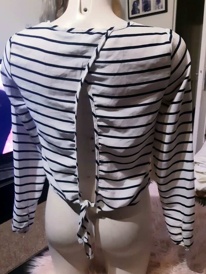 Blouse marinière légère ouverte aux dos noir et blanc femme xs