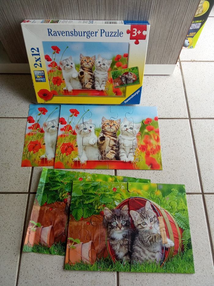 Boîte ravensburger contenant 2 puzzles de 12 pièces et leurs modèles respectifs. Dès 3 ans. Beaucoup d'autres puzzles enfant ainsi que livres, jeux, jouets enfants également à vendre ds mon dressing et réduction activée