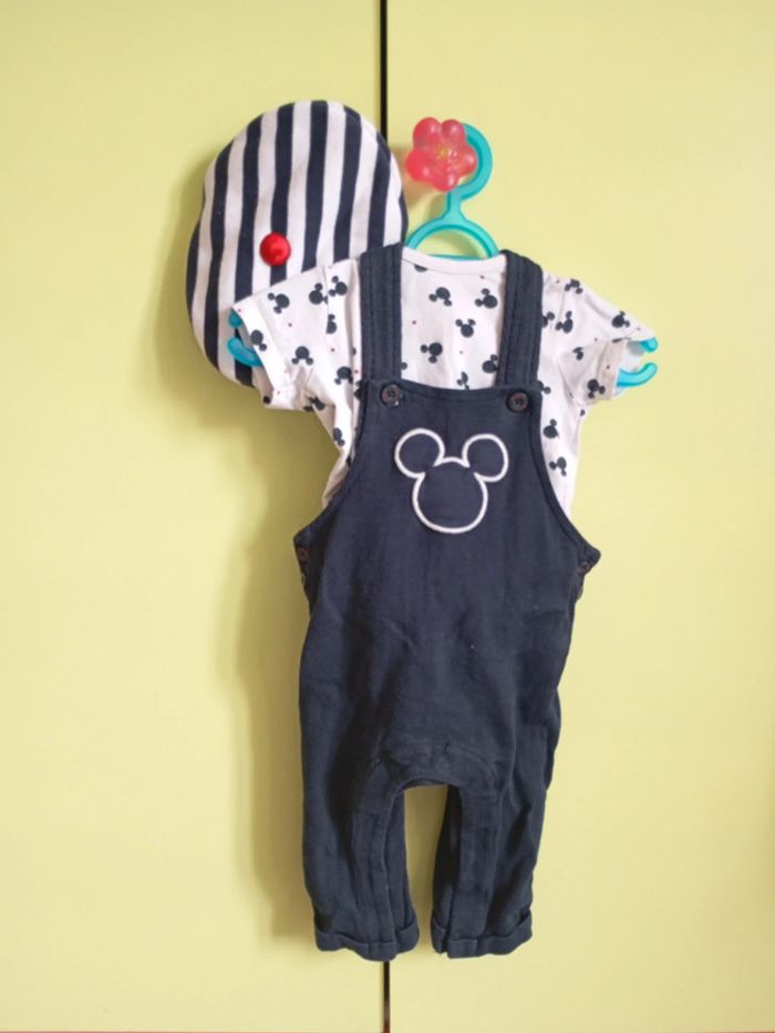 Ensemble mixte orchestra Mickey 3 mois très bon état T-shirt -salopette-chapeau béret