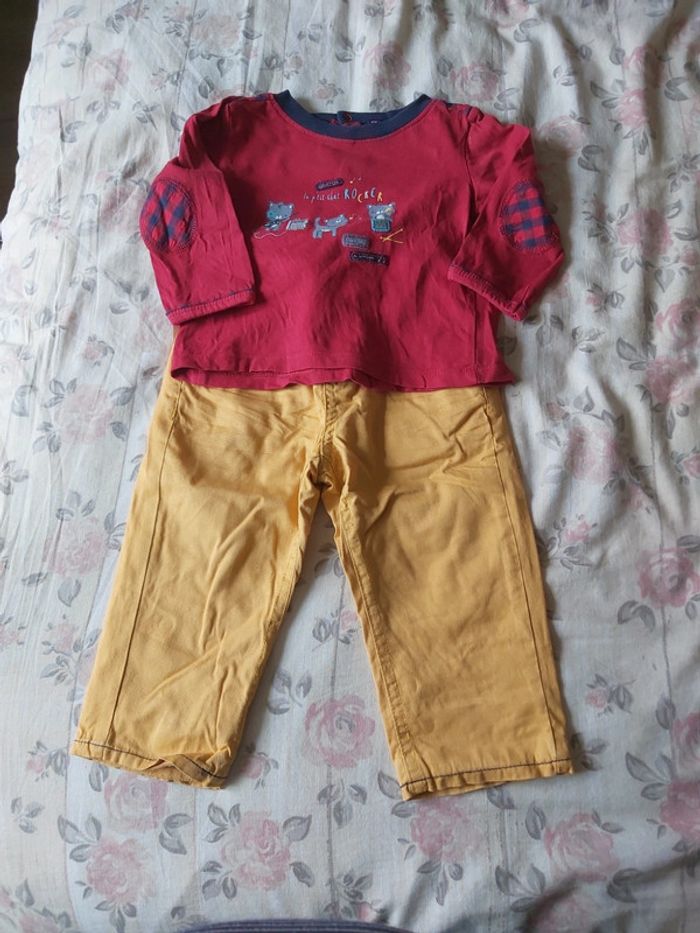 Ensemble 9 mois très bon état Le t- shirt est de la marque sergent Major Le pantalon de la marque Tape à l'oeil