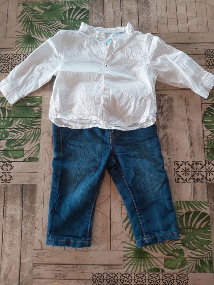 Ensemble 6 mois chemise légère retroussable et jeans bleu foncé Taille 6 mois en très bon état Composez vous même votre lot- remise à partir de 2 articles, 20% à partir de 5