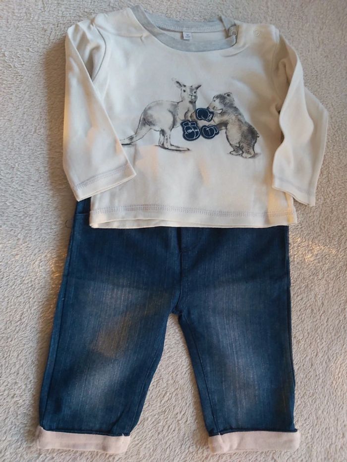 Ensemble t-shirt et pantalon neuf lavé jamais porté (le pantalon taille large,idéal pour gros bébé) +sweat (porté 1 ou 2 fois) Composez vous même votre lot- remise à partir de 2 articles, 20% à partir de 5