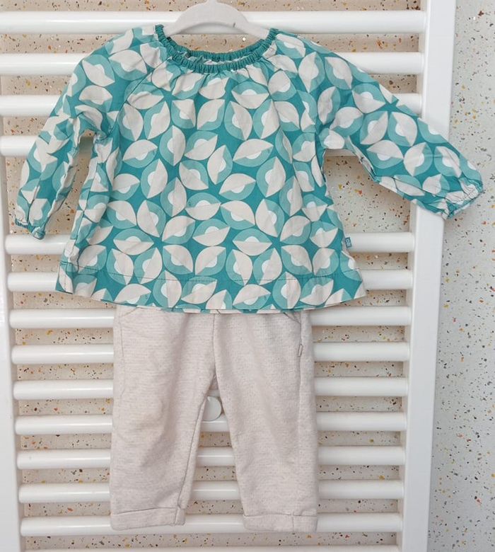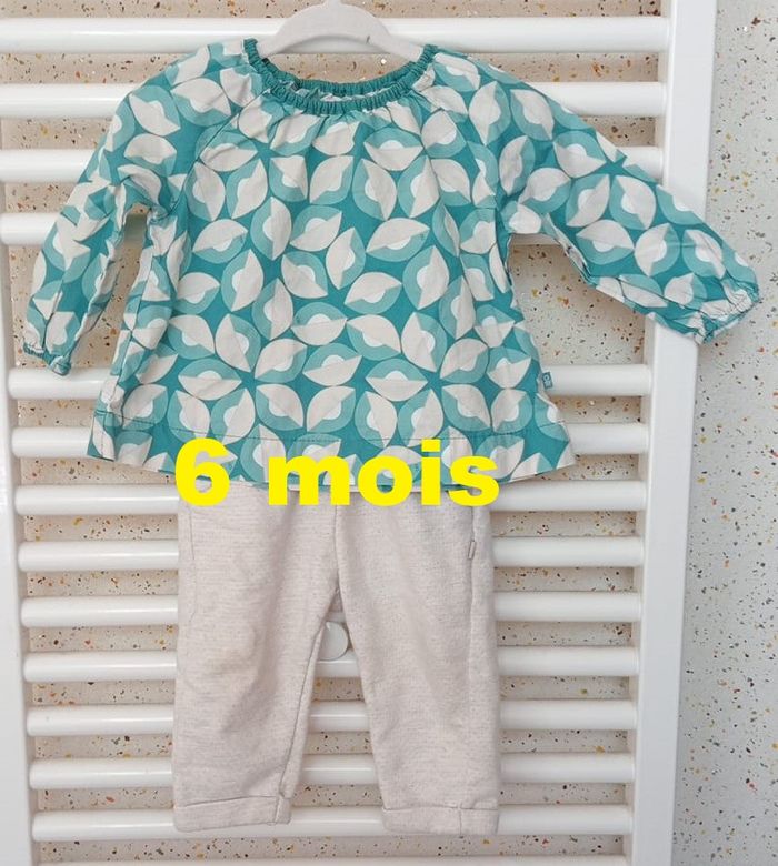 Ensemble Tunique + Pantalon vert crème Obaïbi Taille 6 mois