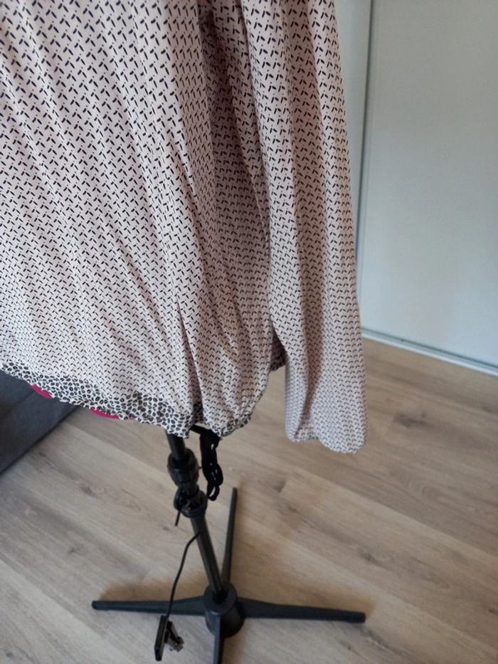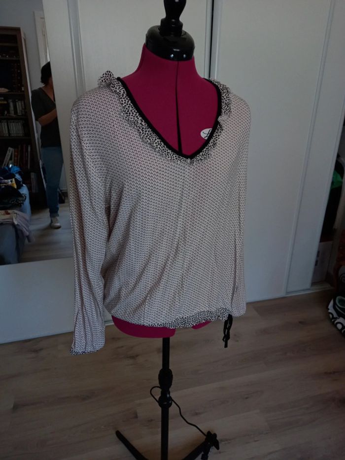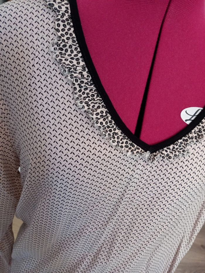Peu portée Excellent état Marque de qualité Beige clair et motifs noirs Joli décolleté. Manches longues Elastiqué au bas des manches. Lien à resserrer à la taille. #nerakaT40 #nerakaCaptain