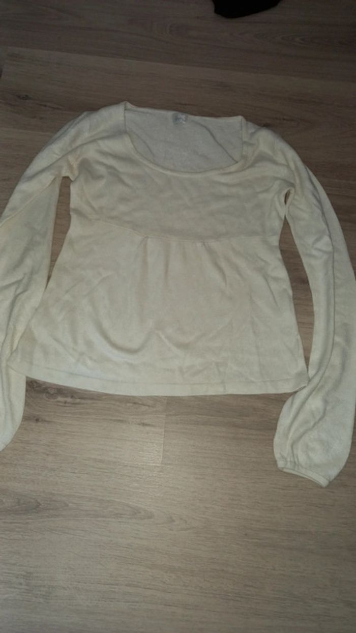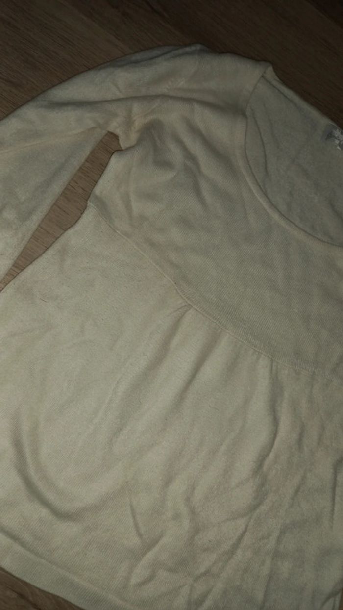 Porté quelques fois. Il ne me va plus. Manches légèrement bouffantes. Coupe plus large sous poitrine. Col rond. Quelques petites bouloches #nerakaT38